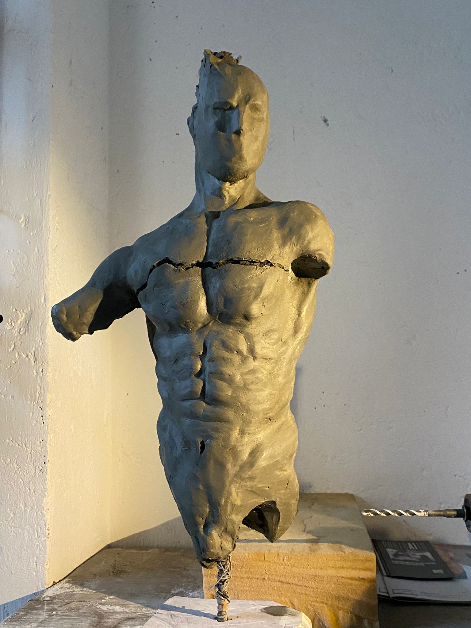 Bozzetto in creta in preparazione per l'opera "Adamo, il primo uomo". 2025